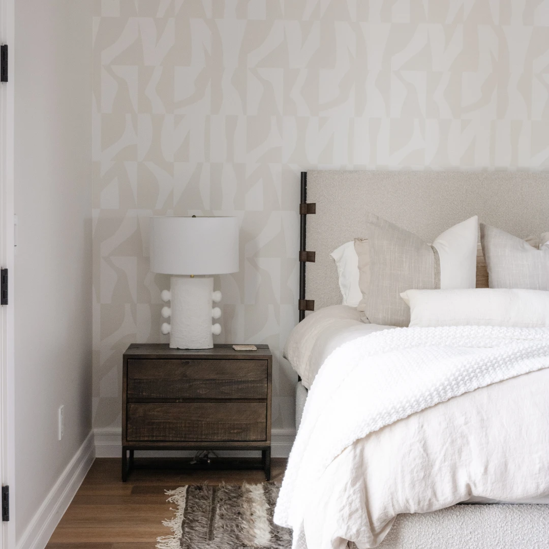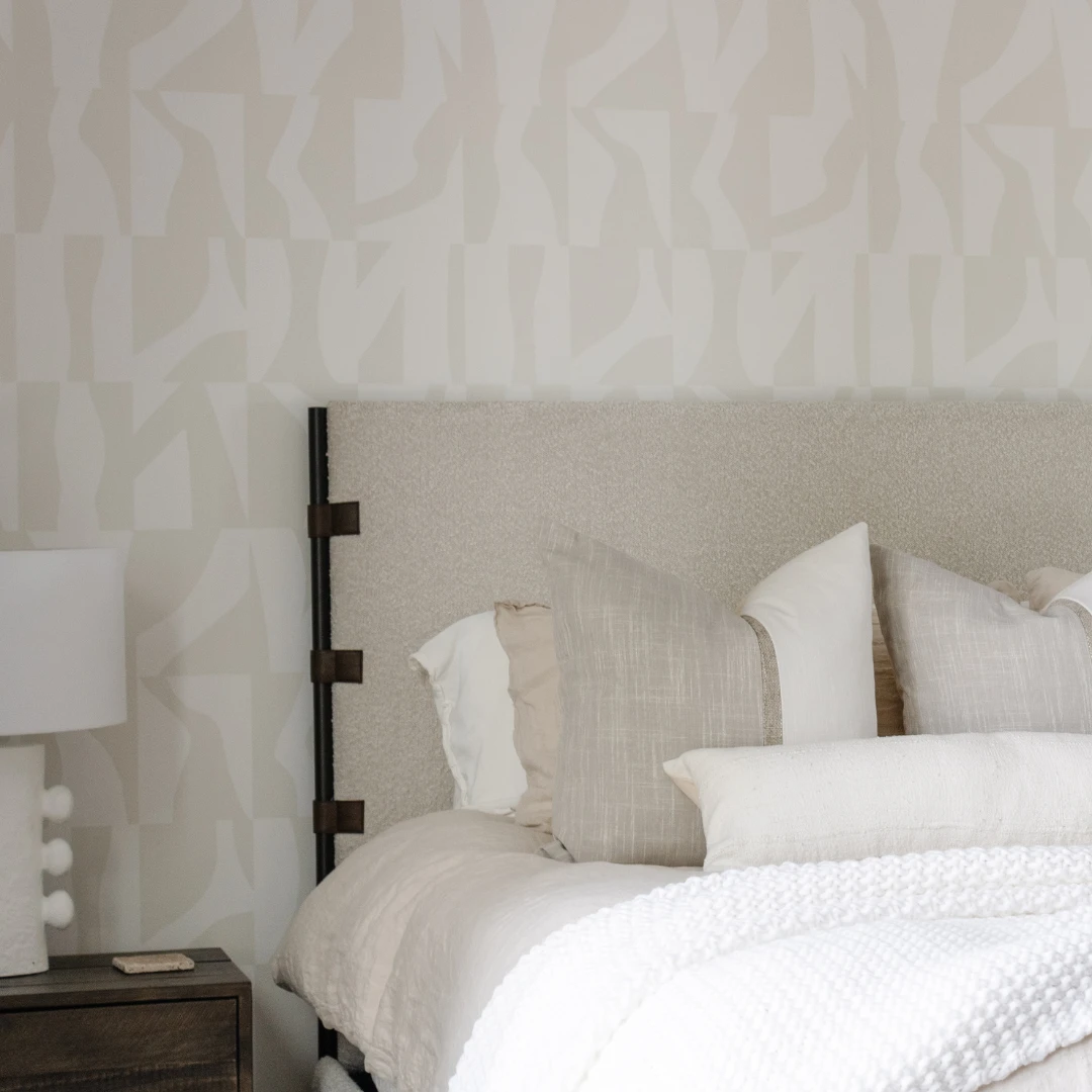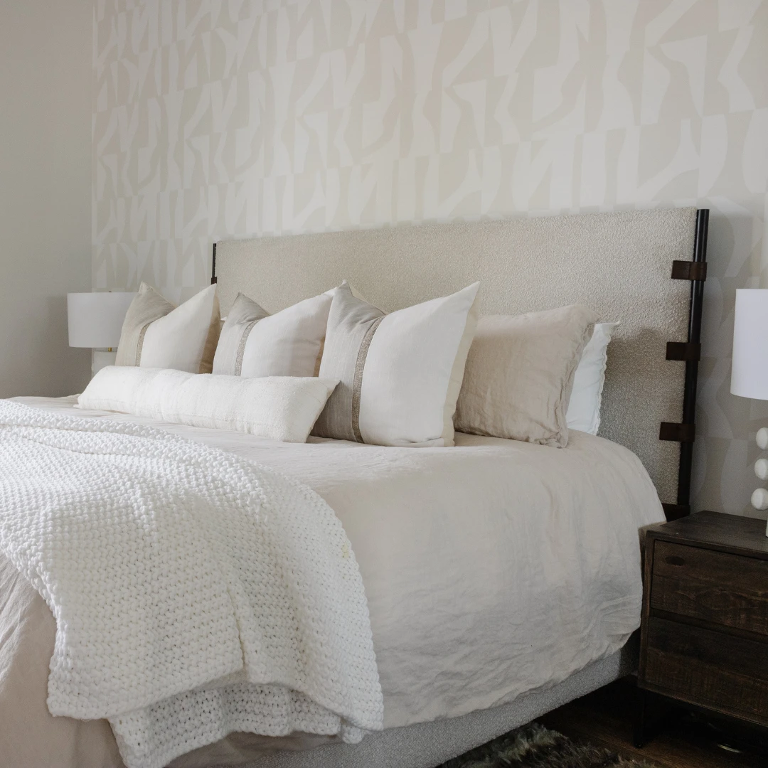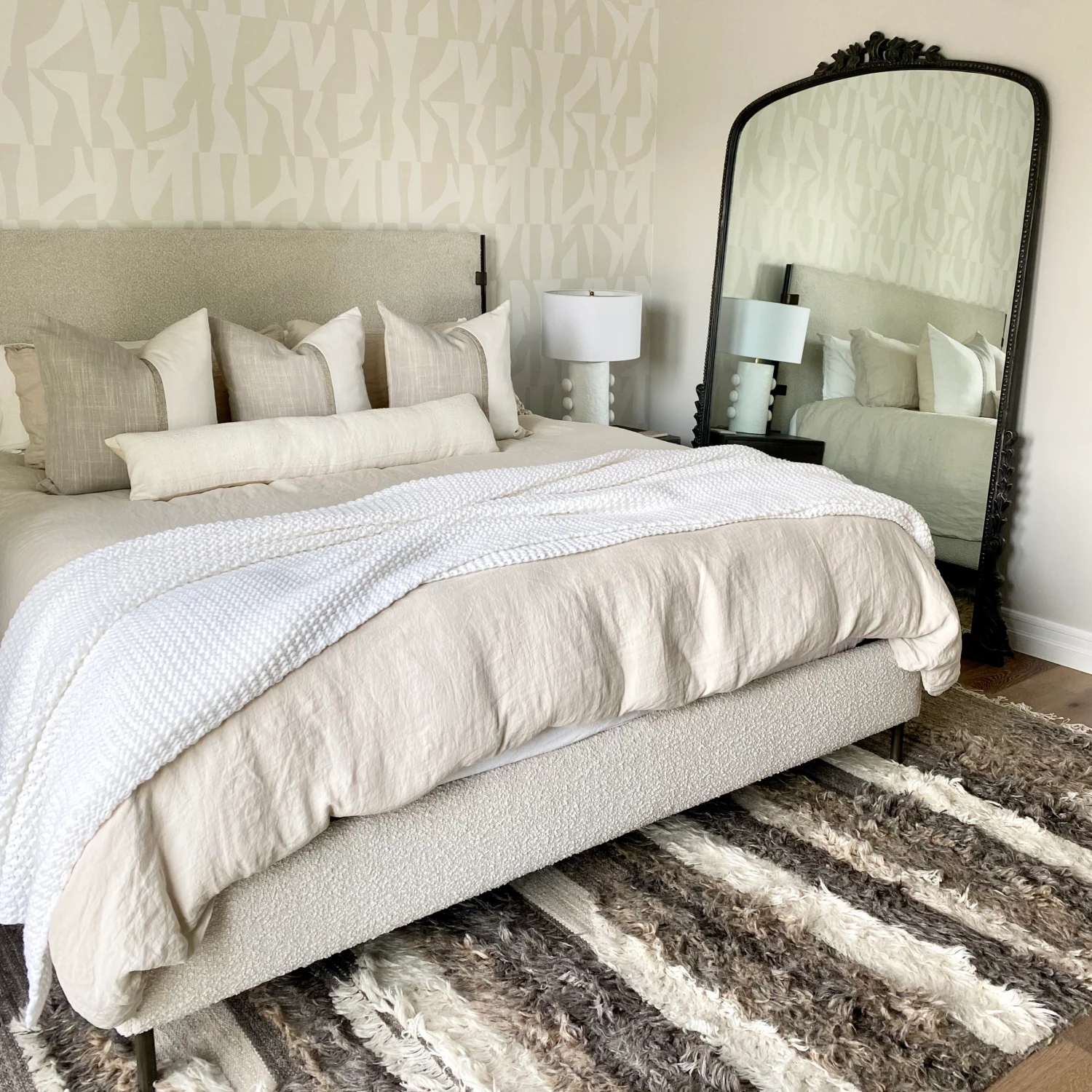Bring texture into play. Upholstered in a classic cream-colored boucle, with decorative leather sling straps adding a material-driven touch with contrast. Standard box spring required. This bed is not compatible with an adjustable mattress.
