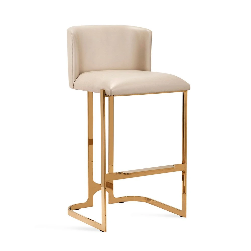 Sleek and so glam, the Banks Bar Stool boasts an architectural stainless steel frame in a polished nickel finish, and an alpine white faux leather seat.