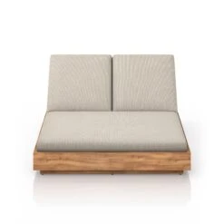 A stylish profile prime for double lounging. boxed base of FSC®-certified teak frames durable, outdoor-friendly cushioning in an inviting light cream hue. Adjustable backs offer individual comfort. Cover or store indoors during inclement weather and when not in use.