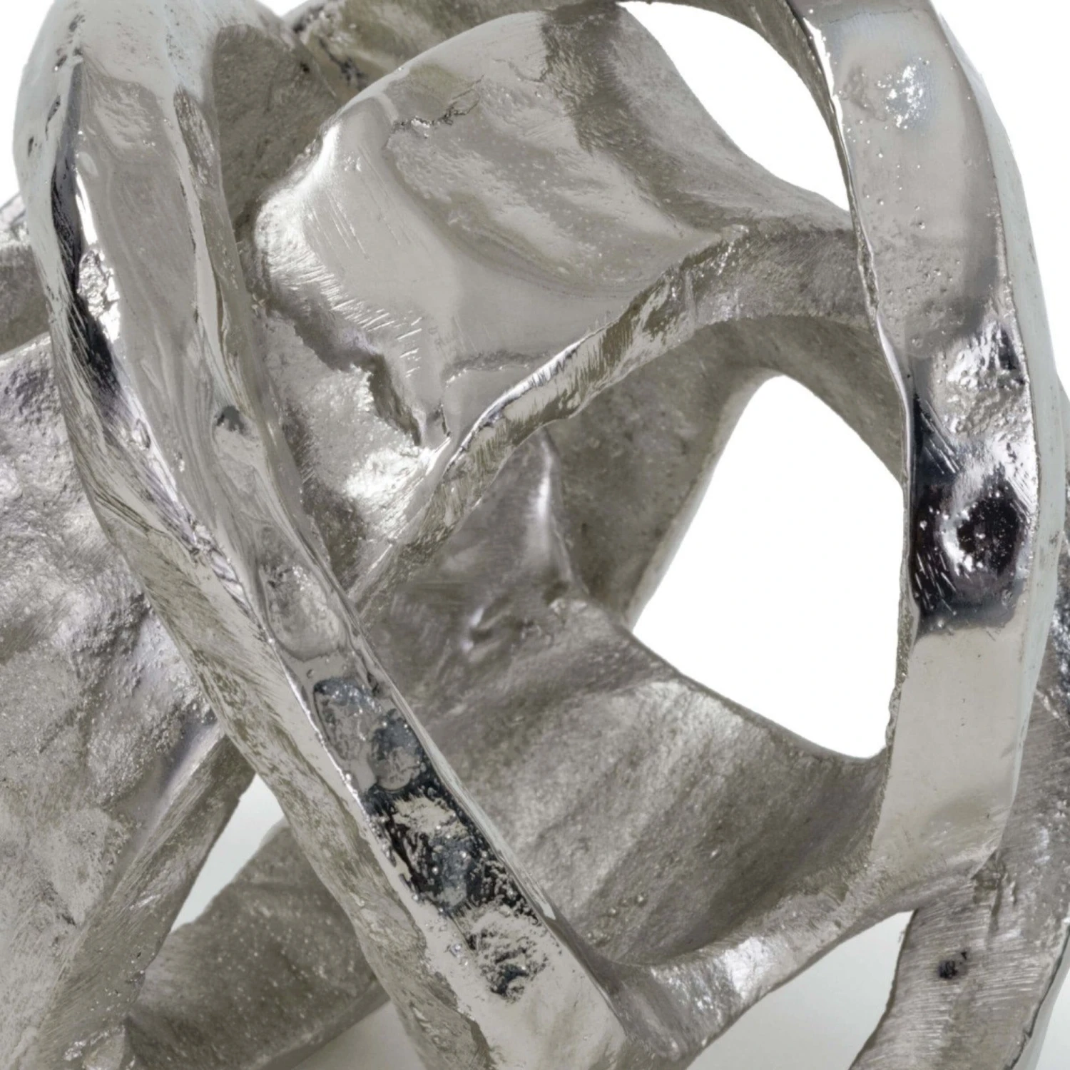 This Knot sculptural object wears a polished nickel finish and has a real, handmade quality, perfect to dress up a living room coffee table or stylish bookshelf.