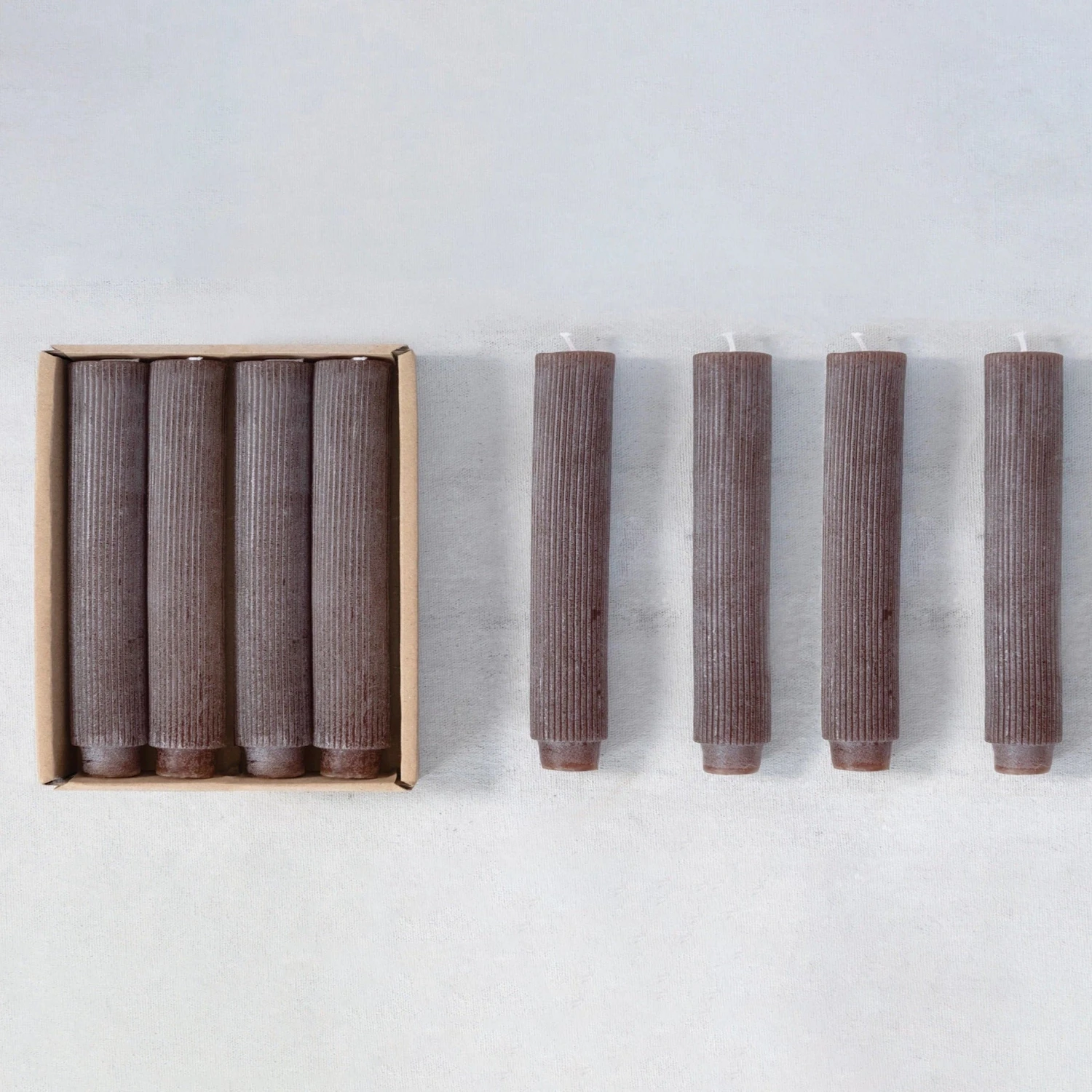 5″H Unscented Pleated Taper Candles in Box, Powder Finish, Leather Color, Set of 12 (Approximate Burn Time 5 Hours)