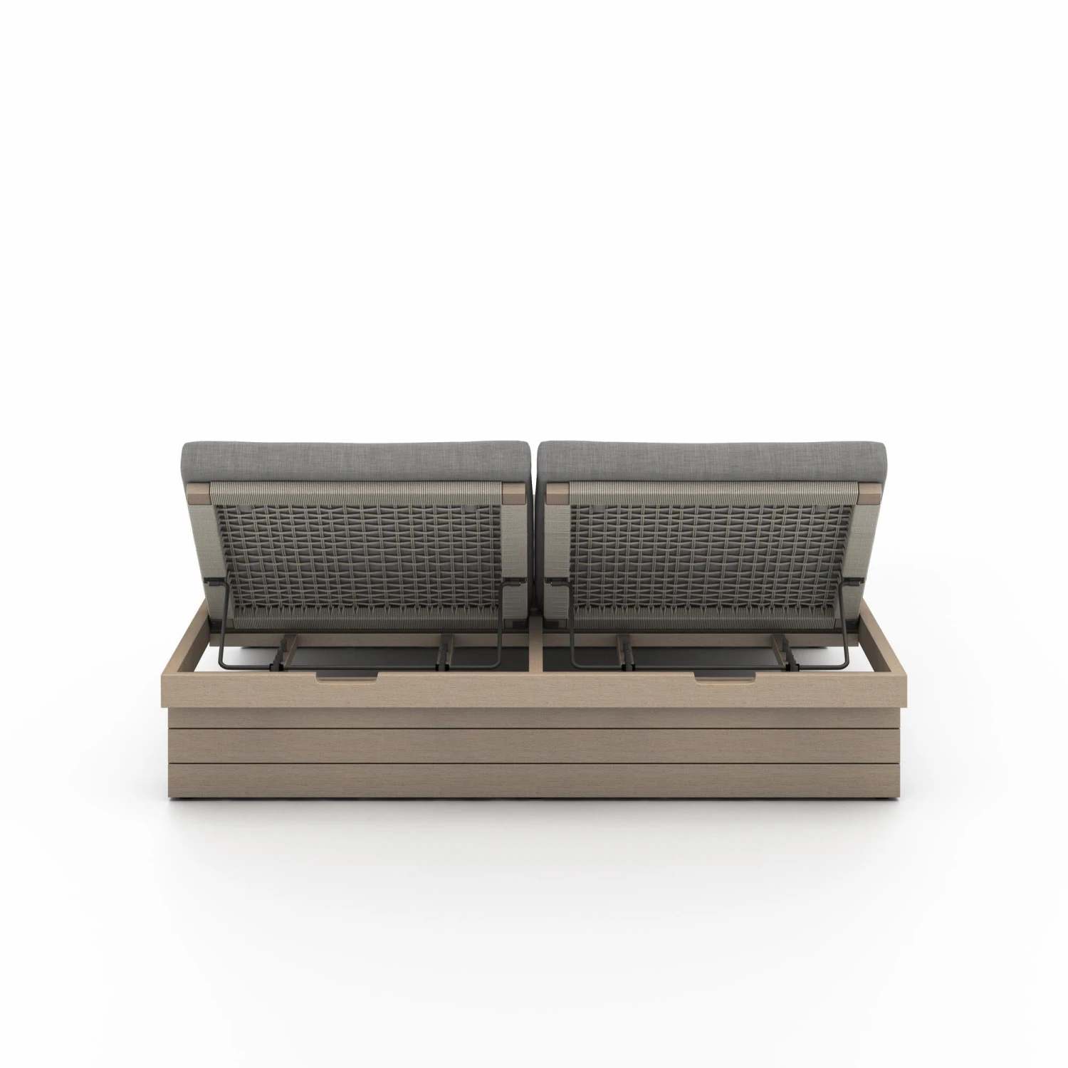 Recline in style, indoors and out. Finished in a washed brown, FSC®-certified teak forms an adjustable double frame for UV-resistant and water-repellent cushioning in a textural ash, with rear rope detailing for added dimension. Clever split back allows for varied recline angles. Cover during inclement weather and when not in use.