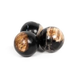 Made from petrified woods, a three-piece set of decorative balls can be styled just about anywhere.