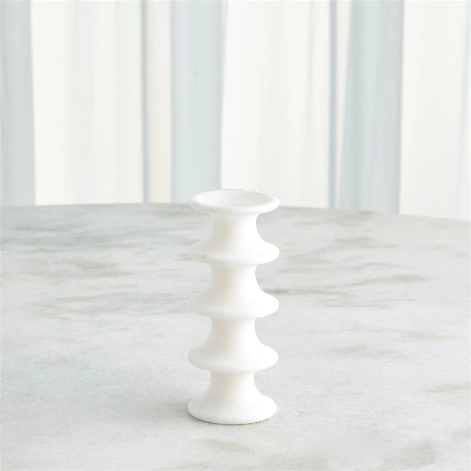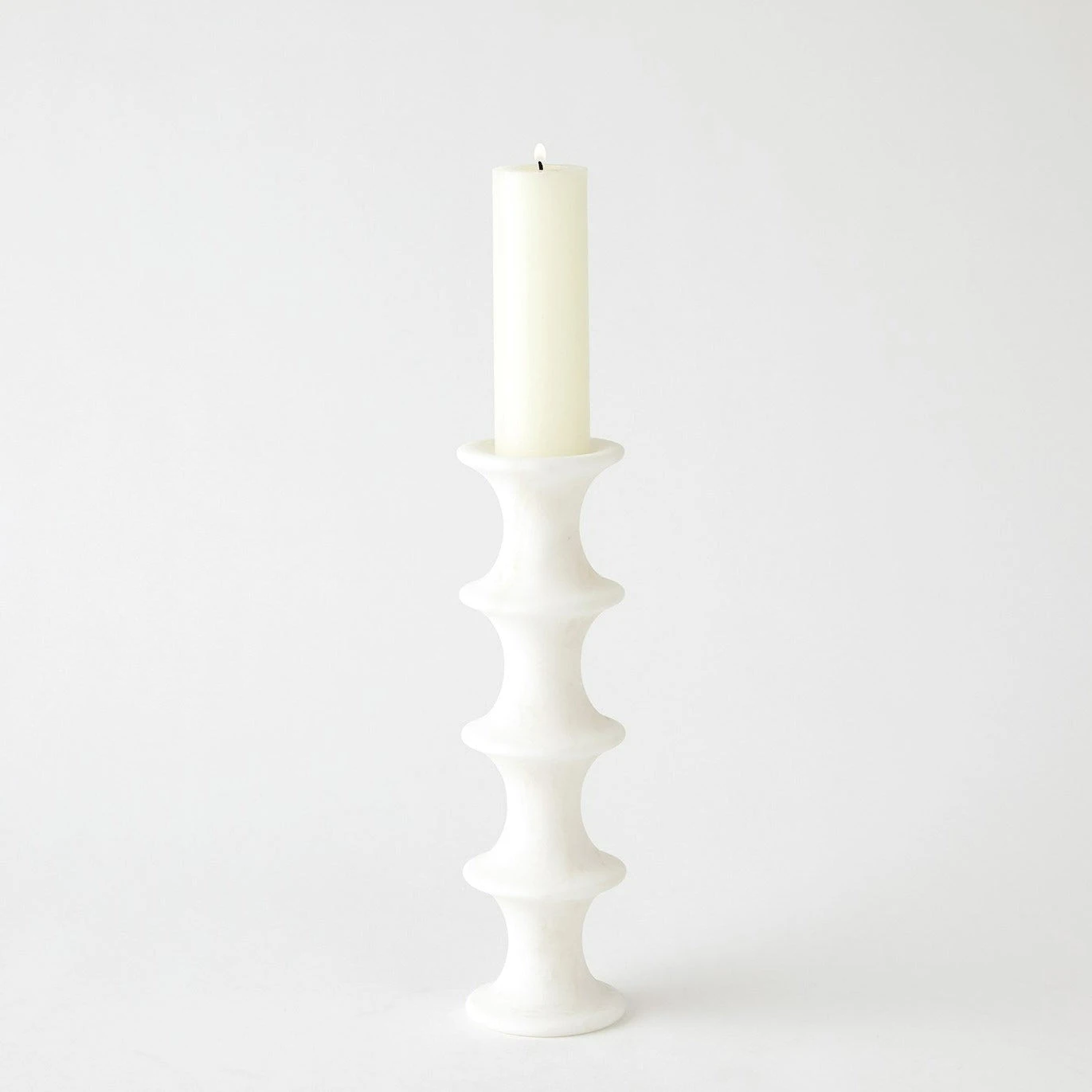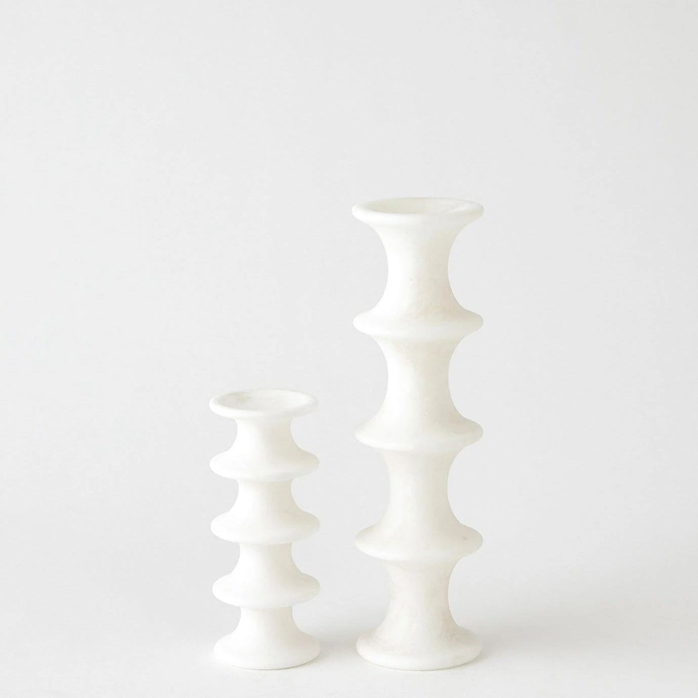 Horizontal fluting compliments the solid alabaster of our Ridge Candlesticks. Designed to hold a tapper or pillar candle, these are beautiful as a stand-alone accent or displayed in a group. As alabaster is a natural product, please be aware that there will always be variations in veining and color. This is to be expected and makes every alabaster product uniquely your own.