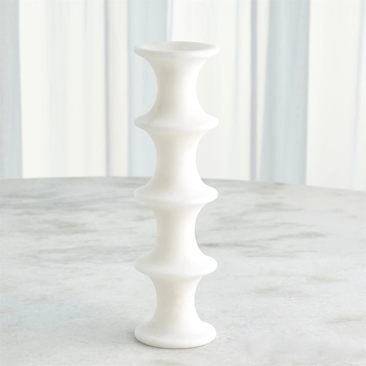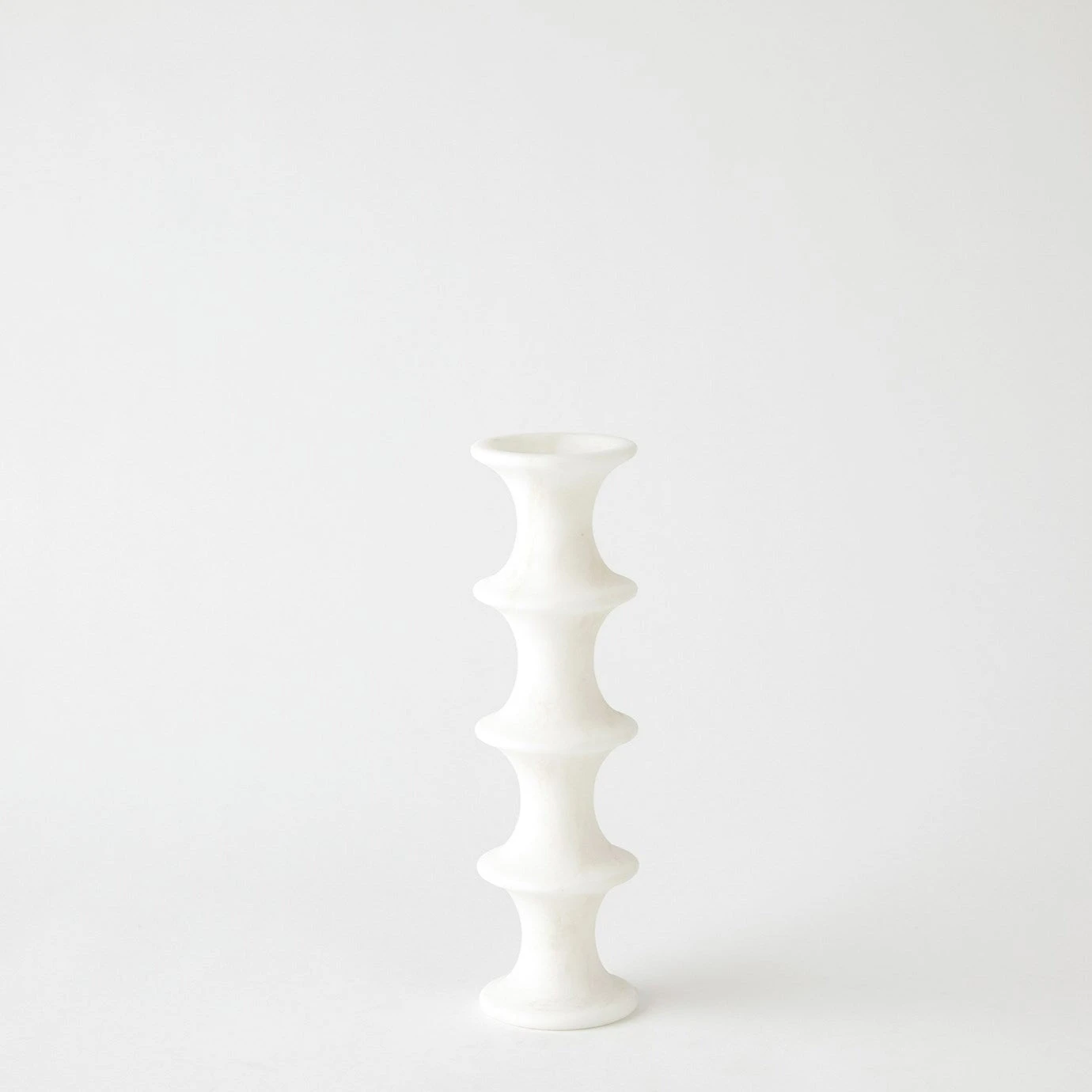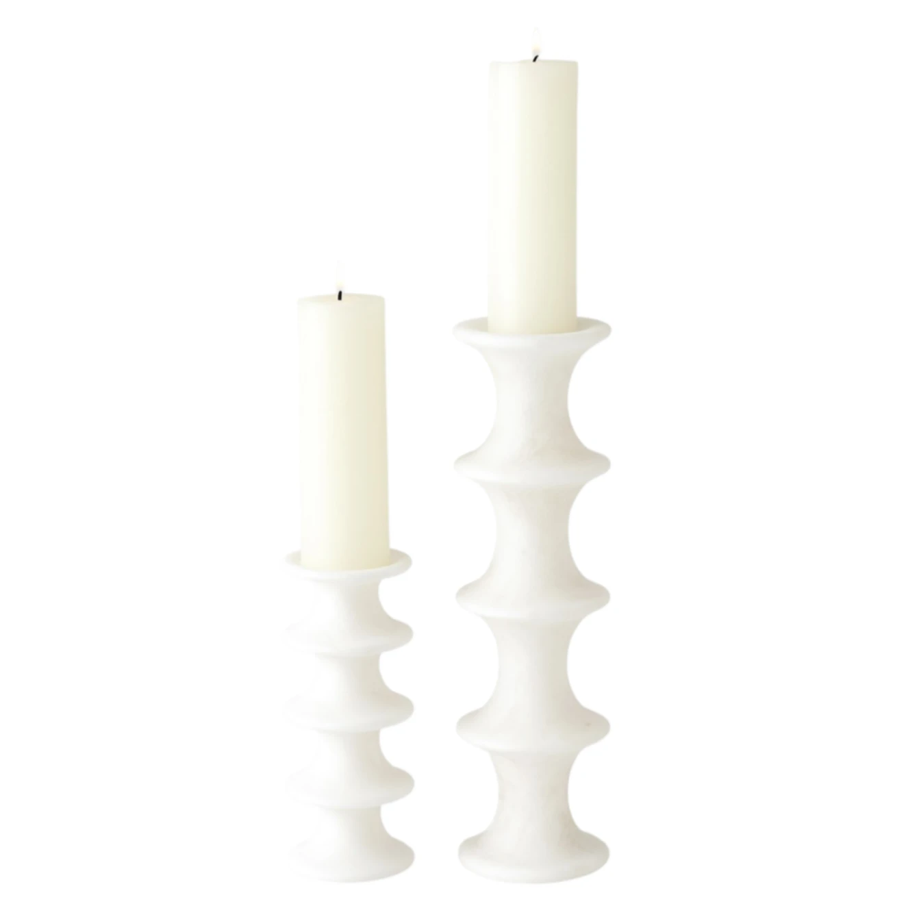 Horizontal fluting compliments the solid alabaster of our Ridge Candlesticks. Designed to hold a tapper or pillar candle, these are beautiful as a stand-alone accent or displayed in a group. As alabaster is a natural product, please be aware that there will always be variations in veining and color. This is to be expected and makes every alabaster product uniquely your own.