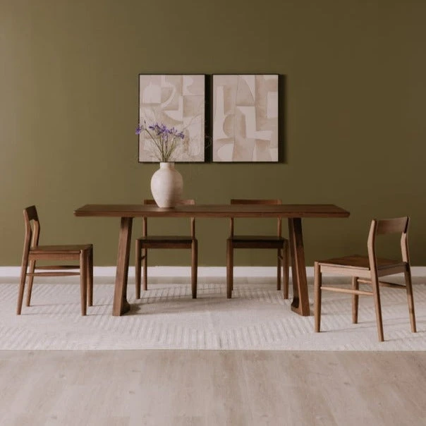 The dining table is like the heartbeat of the home. Silas is here to uplift, brighten up your dining aesthetic, and bring the family together with its 8-person seating. Oh-so-natural with knots, grain patterning, swirls, and beautiful coloring ensures that no two tables are exactly alike. This contemporary modern classic features an airy base and long tabletop design that will gently fit any decor style, open-plan dining room, or country-style kitchen. This item is also available in a smaller, round design, ideal for condo or small-space living.