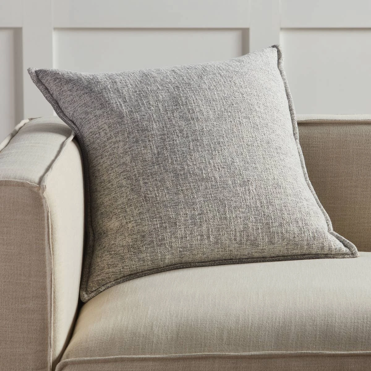 The Tanzy pillow collection boasts an assortment of earthy tones and simple patterns for cozy, inviting looks that complement any style. The Lochlan throw pillow features a solid heathered pattern and a reverse stripe pattern in a contemporary silver and cream colorway. The 100% cotton cover provides a comforting global feel and perfects indoor spaces such as sitting rooms, living areas and bedrooms alike.